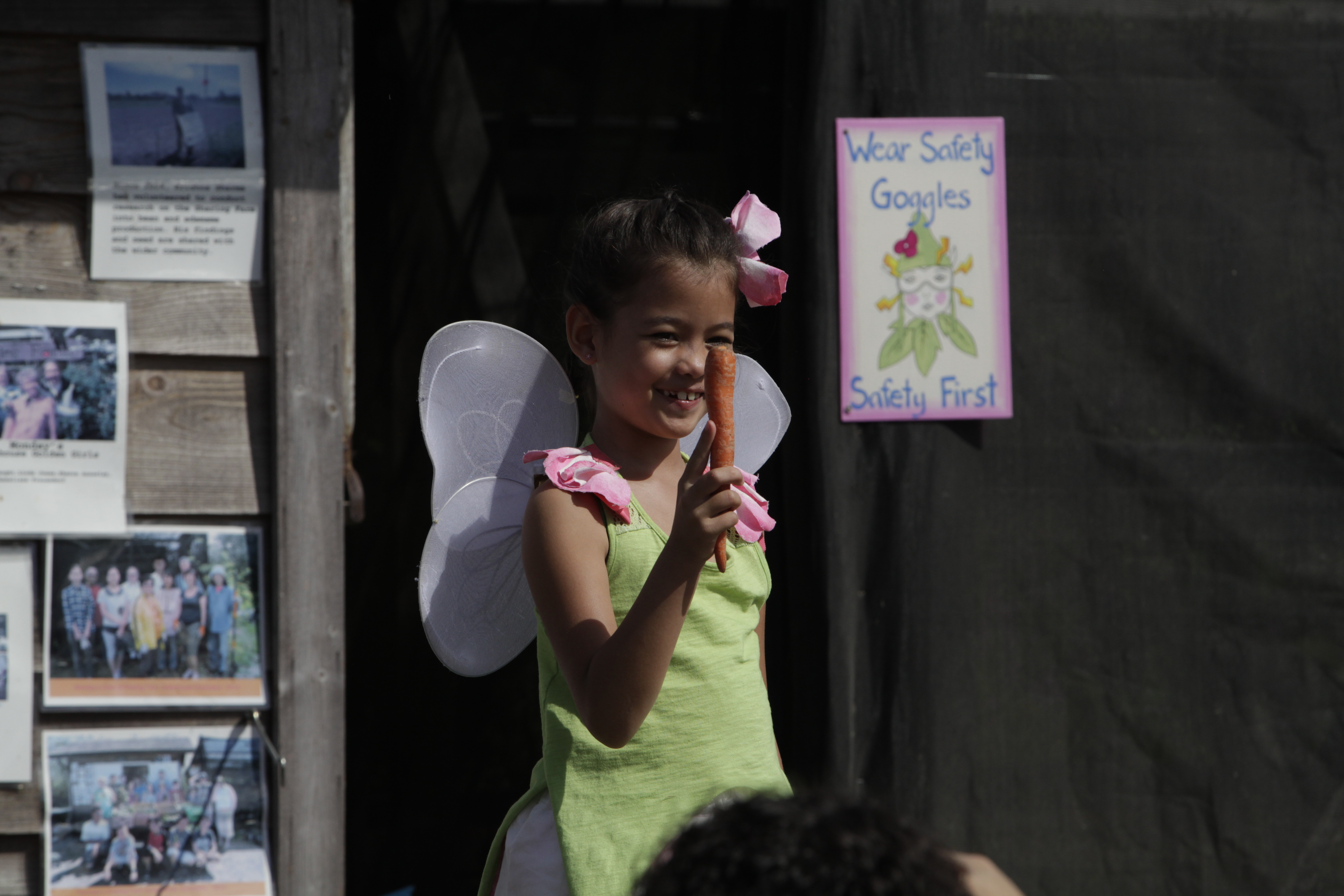 While searching for the lost girl, the audience is lead through the farm learning the secrets of the land meeting raptors, voles, daisies and potatoes that live on the Sharing Farm through Frank Rader and Iona Paul and Joseph Paul's wonderful puppets as they solve the mystery at the sunflower circle. The play takes place when farm work is actually being done giving the audience an opportunity to interact with the farmers enhancing the understanding of nature and the importance of growing food.